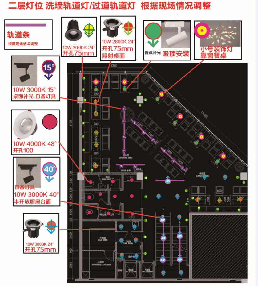馬西(xi)莫餐廳燈(deng)光設計(ji)改造現場調節案例--光柏士餐(can)飲照明(ming)燈光改造案例--洗墻照明(ming)餐(can)飲專用高顯(xian)指3000K的(de)軌道射燈照射墻面(mian)文化,裝飾 ;