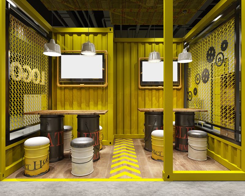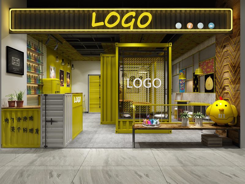 飲品小吃整個店面環境--燈光整體使用暖色調,襯托飲品的裝飾布局,重點照射裝飾畫,擺設,餐廳。