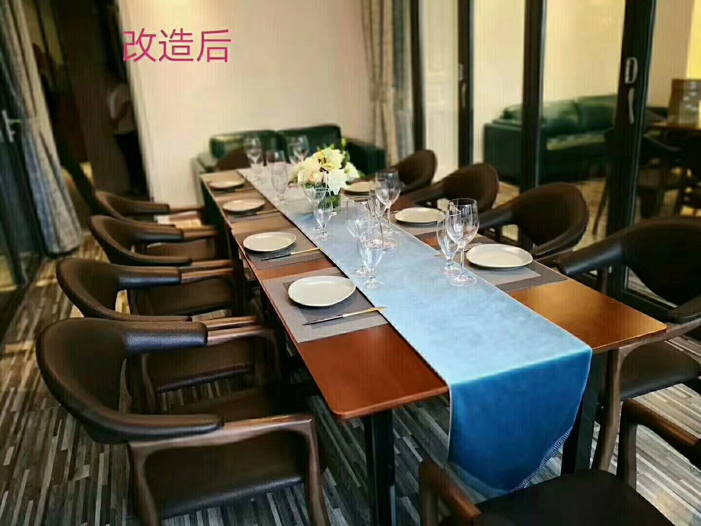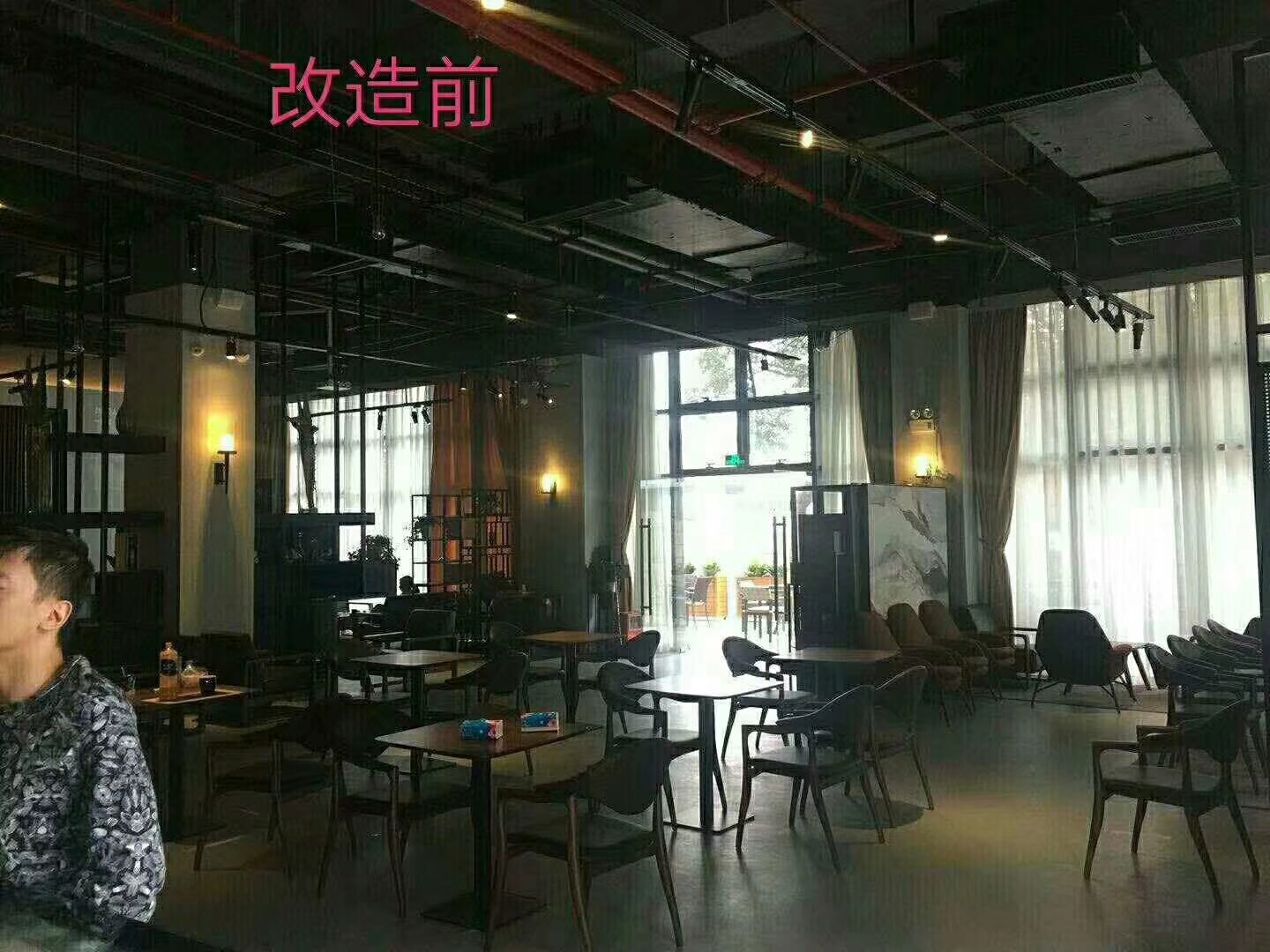 餐廳改造后使用高顯指燈具,菜品色彩還原更好。改變餐廳燈具布局,營造出一個溫馨浪漫的氛圍,桌面照明使用光柏士定制燈具,顯色指高對于菜品色彩還原度好,過度區平緩。