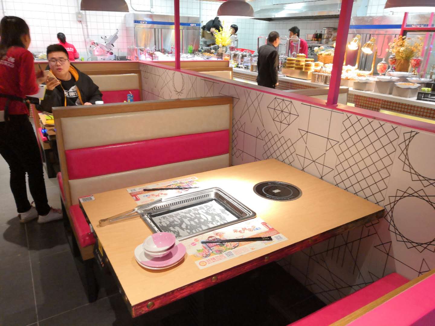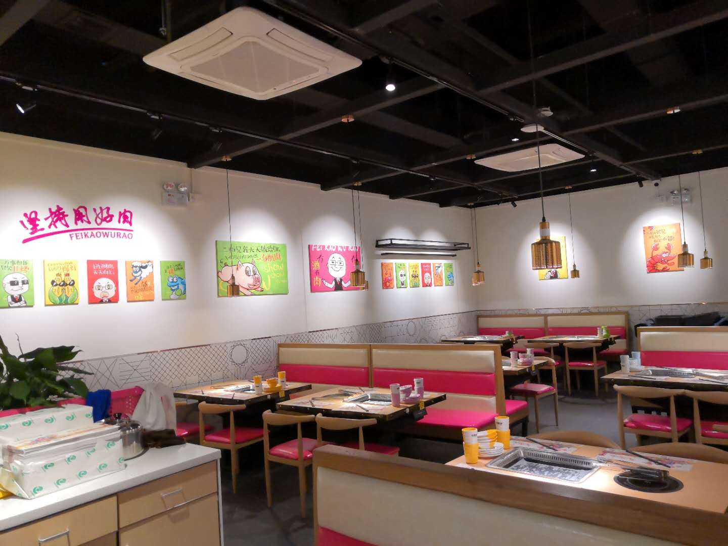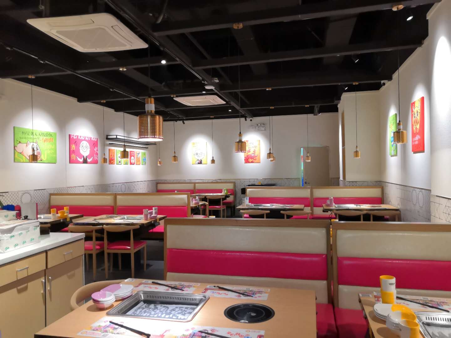 每個餐桌上都安裝一盞吊燈,燈光建議用暖白光,更好地還原烤肉的本色。