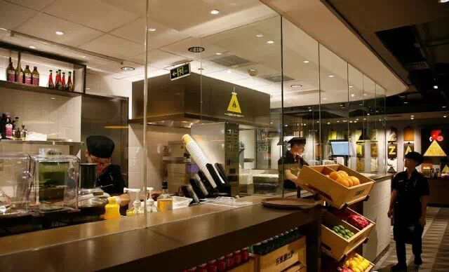▲簡潔干凈的操作臺,顧客可清晰看清所選用的食材及制作過程,吃的放心即最為舒適的用餐。(光柏士餐廳照明設計 3000K特殊光色)
