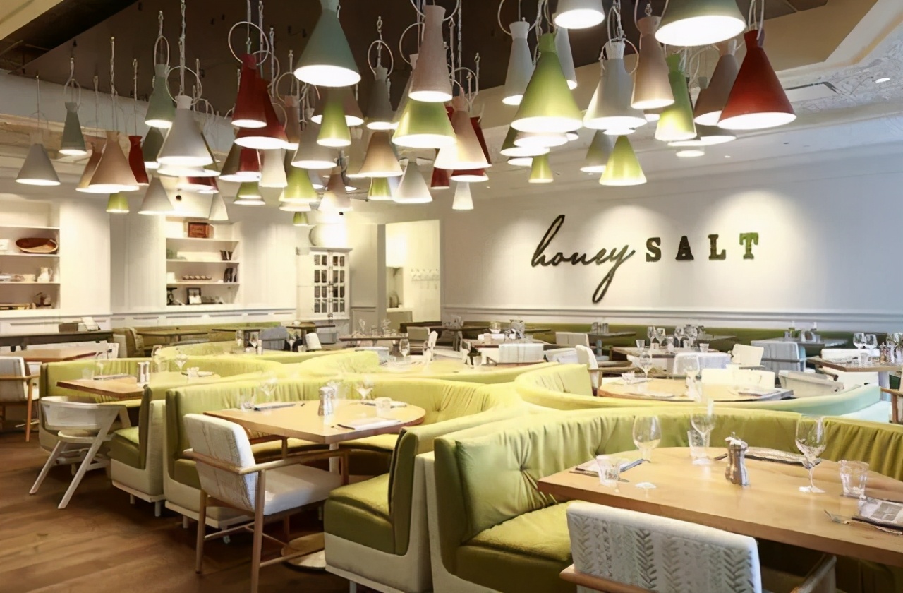 1、一般來說,餐飲燈光設計,餐廳照明以懸掛在餐桌上方的吊燈效果最好,柔和的光暈聚集在餐桌中心,具有凝聚視覺和用餐情緒的作用。但餐廳吊燈懸掛的高度、燈罩和燈球的材質與形式需小心選擇,以免造成令人不舒服的眩光。同時,還需避免裝帶眩目強光的吊燈懸掛在屋燈上,需選擇具有隨意上升下降裝置的吊燈,以便調整和選擇高度。